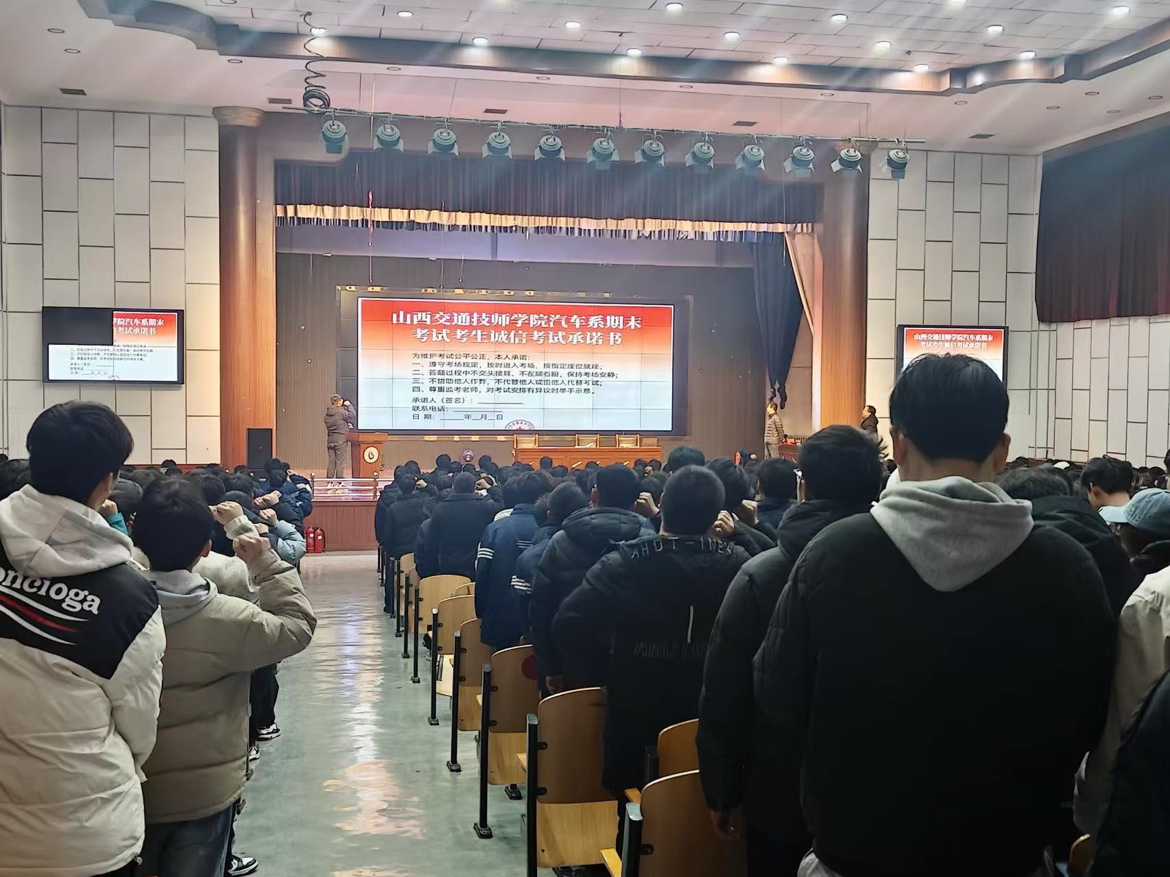 12 月 30 日下午,汽车技术与服务系在学院礼堂召开学生岗位实习安全教育暨期末考试动员大会。汽车系书记张庆龙、行政第一负责人王勇勇以及全体班主任、在校学生参加会议,会议由汽车系团总支负责人郑刘贺主持。