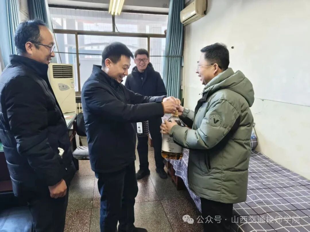 金马贺岁,新春吉祥。2月17日正月初一上午,在万家团圆、共庆佳节的美好时刻,学院党委书记杨建国、副院长王永亮带领党委办公室、行政办公室、学生科、后勤管理与保卫科等相关科室人员深入校园一线,看望慰问春节期间仍坚守岗位的值班人员,向他们致以新春的诚挚问候和美好祝福,并送上节日慰问品。