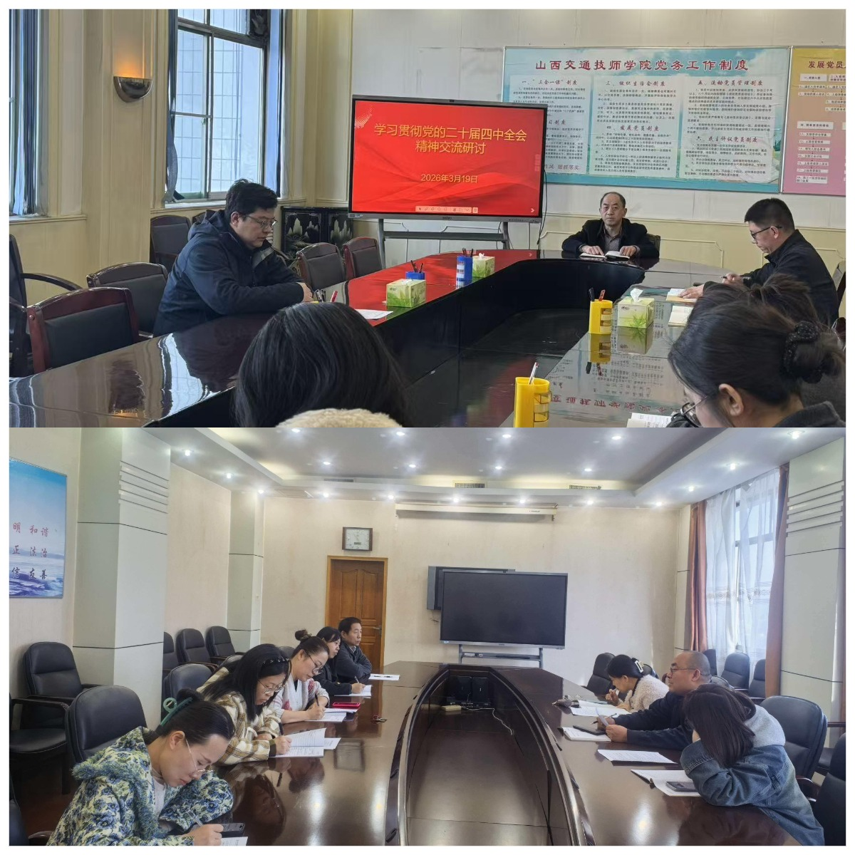 本次培训采取“集中培训+分组交流研讨”的方式进行。全体科级干部和党员集中学习了中央党校(国家行政学院)经济学教授讲授的《“十五五”时期经济社会发展的重大战略任务》和《“十五五”时期经济社会发展的指导思想、重大原则、根本保证和重大战略任务》等核心课程。随后,以支部为单位进行交流研讨,大家围绕贯彻落实全会精神,结合学院“十五五”高质量发展目标和自身岗位实际,就深化产教融合、校企合作,打造契合山西产业发展需求的特色专业群,落实立德树人根本任务,培养“德技并修”的新时代能工巧匠等议题,深入交流思想认识、畅谈工作思路、谋划落实举措。