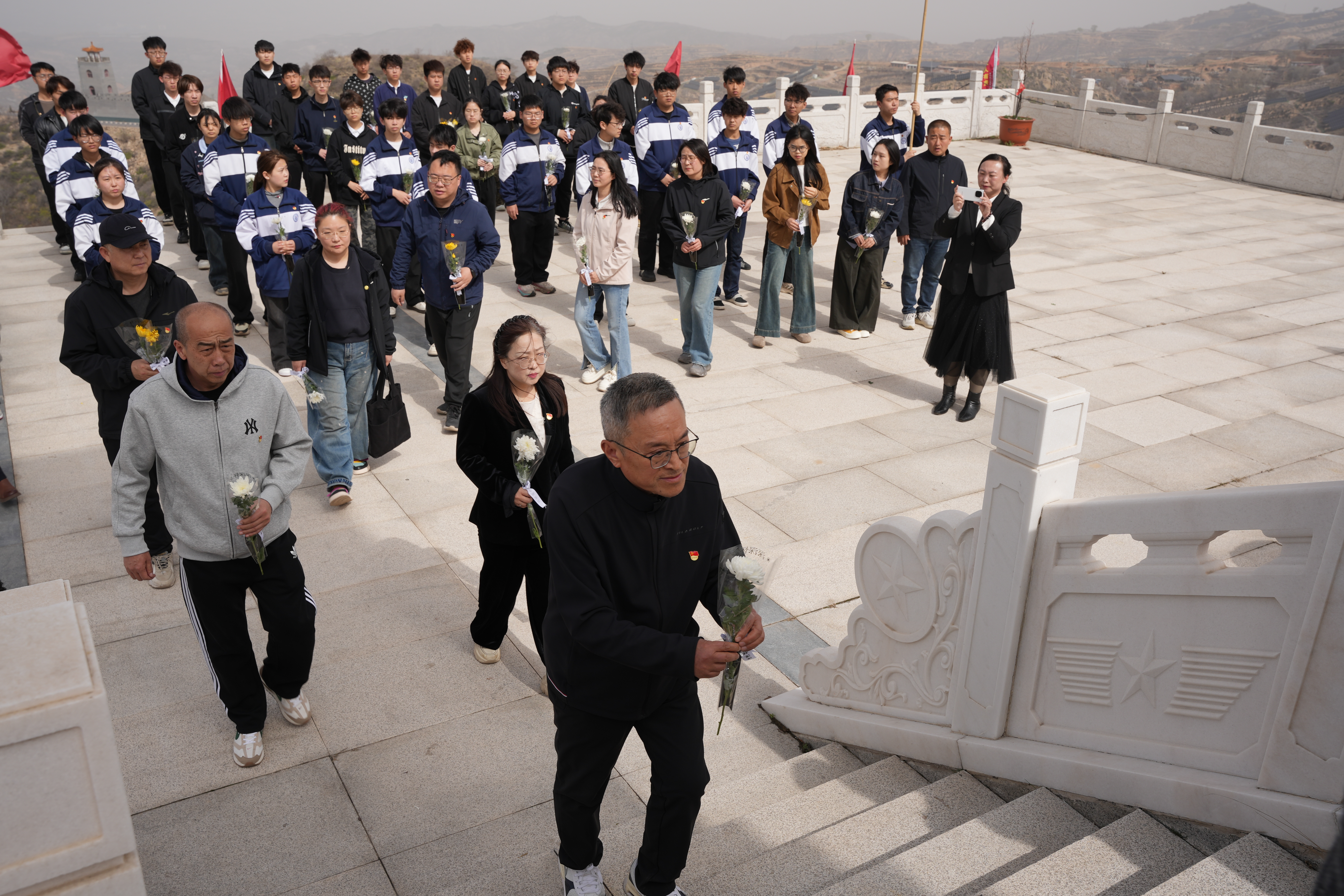 默哀毕,卫申蔚带领师生代表缓步走向烈士纪念碑,敬献花篮,向革命先烈致以最诚挚的追思与最崇高的敬意。全体人员面向烈士纪念碑庄严三鞠躬,以最庄重的礼仪,表达对革命先烈的深切缅怀。