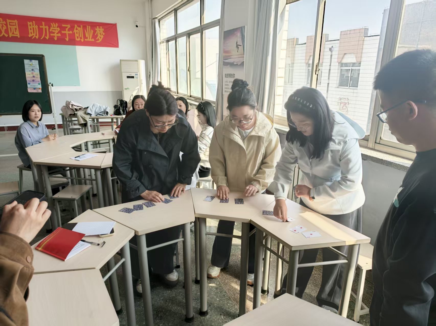 活动伊始,一场独特的“卡片破冰”迅速点燃了现场氛围。老师们凭直觉抽取精美卡片,依据图案进行分组。在热烈的组内分享中,大家畅谈对卡片内容的理解与选择初衷,并迅速推选出组长、学习委员及纪律委员,为活动的有序开展奠定了坚实的团队基础。
