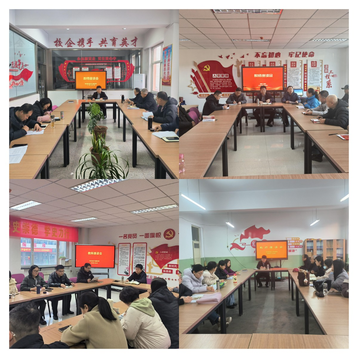 在各系教师座谈会上,薛玉荣认真听取了系部负责人关于专业建设、师资队伍、学生培养、校企合作、面临挑战及未来发展思路等方面的汇报,听取了一线教师在教育教学、学生管理、个人发展等方面的切身感受与意见建议,并就大家关心的问题进行了现场回应与深入交流。