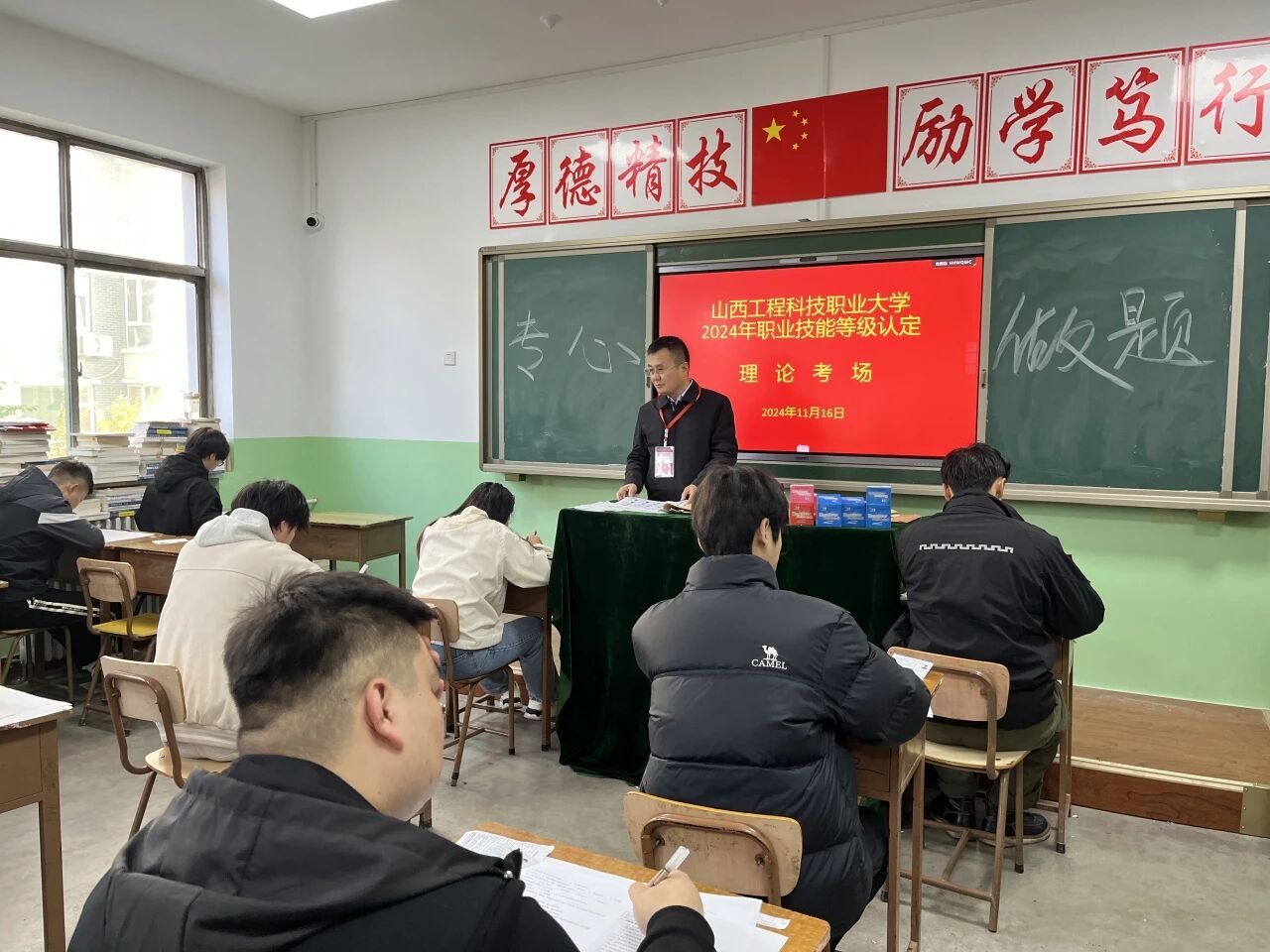 考试期间,温时德副院长深入考区指导监考情况,确保认定工作严谨、有序进行。所有理论考场和实操考场全程视频监控,考试井然有序,本次职业技能等级认定工作圆满完成。