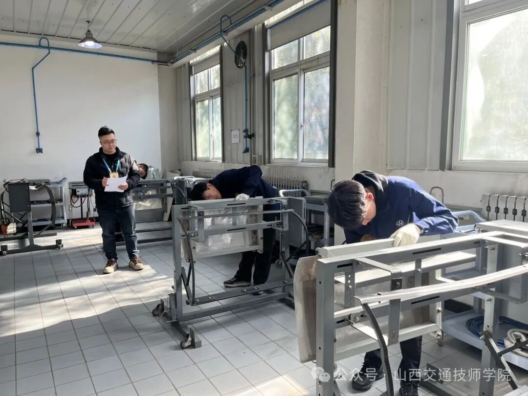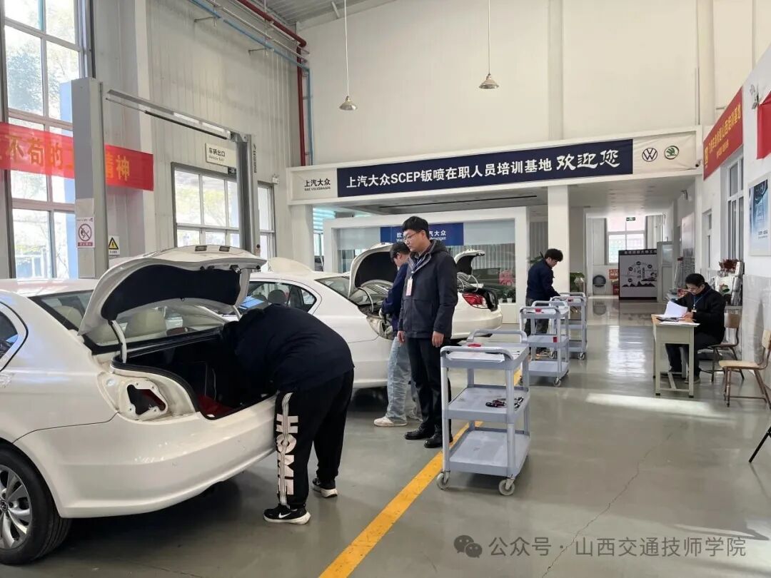 本次认定考试分为理论与实操两大模块,各环节组织有序。理论考试设置5个标准化考场,确保考核规范严谨。实操考核为期两天,在上汽通用实训中心与上汽大众钣喷实训中心开展,电器类涵盖制动盘检查与更换、发动机活塞环检查与更换、手动变速箱拆装调整等11个实操项目,车身整形类包含翼子板损伤部位评估、后保险杠拆装、铝门板整形修复等7个考核项目,全面细致检验考生的专业技能水平。