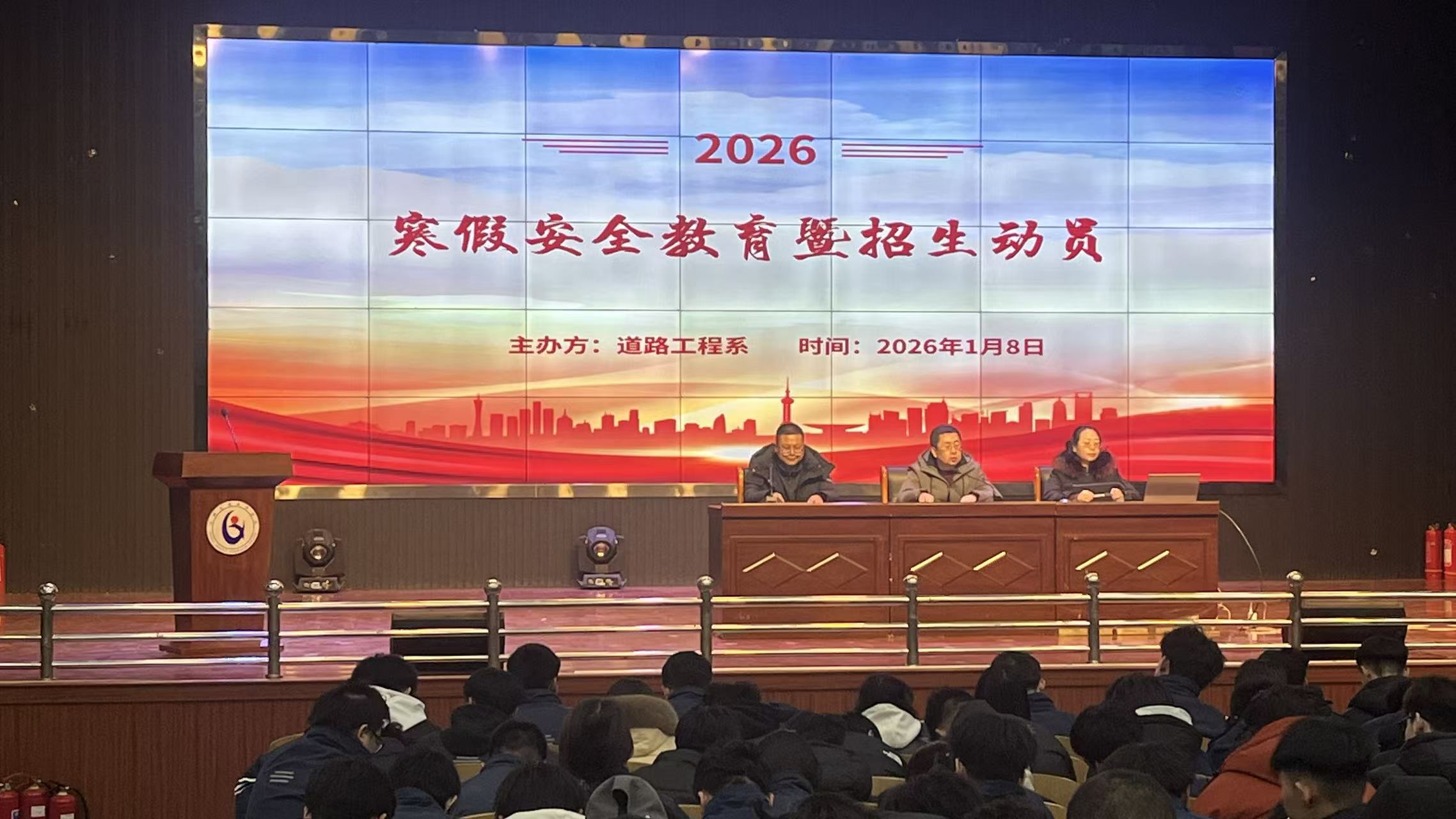 为扎实推进期末各项工作,强化学生管理,学院道路工程系于 1 月 8 日晚,在礼堂召开期末教育管理工作大会。系书记乔捷、副主任孙亚骞参加会议,系第二行政负责人马亮主持会议。