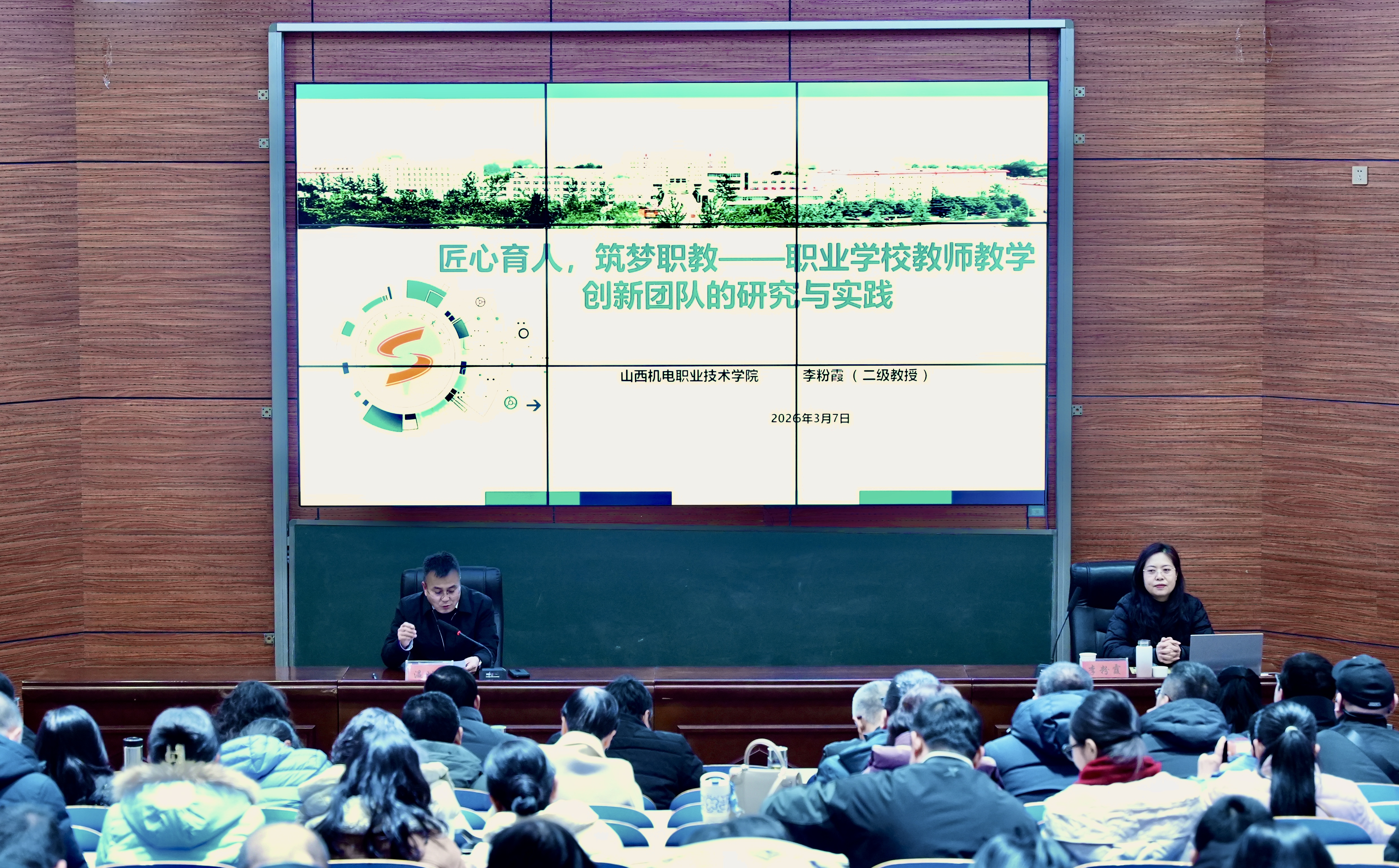 3月7日,学院特邀全国教书育人楷模、国家“万人计划”教学名师、山西机电职业技术学院李粉霞教授带来了“匠心育人,筑梦职教——职业学校教师教学创新团队的研究与实践”的精彩报告。李粉霞教授作为全国黄大年式教师团队带头人、全国职业教育教学创新团队负责人,在团队建设、教学改革、人才培养等方面成果卓著。她结合自身丰富的实践与研究经验,深入阐述了教学创新团队建设的理念、路径与方法,“实、拼、专、闯”铸牢师德之魂、“培、育、引、聘”构建师资团队结构、“教、研、改、创”深化校企协作、“传、帮、带、练”四级培优人才,为学院教师团队发展提供了宝贵的理论指导和实践范例。