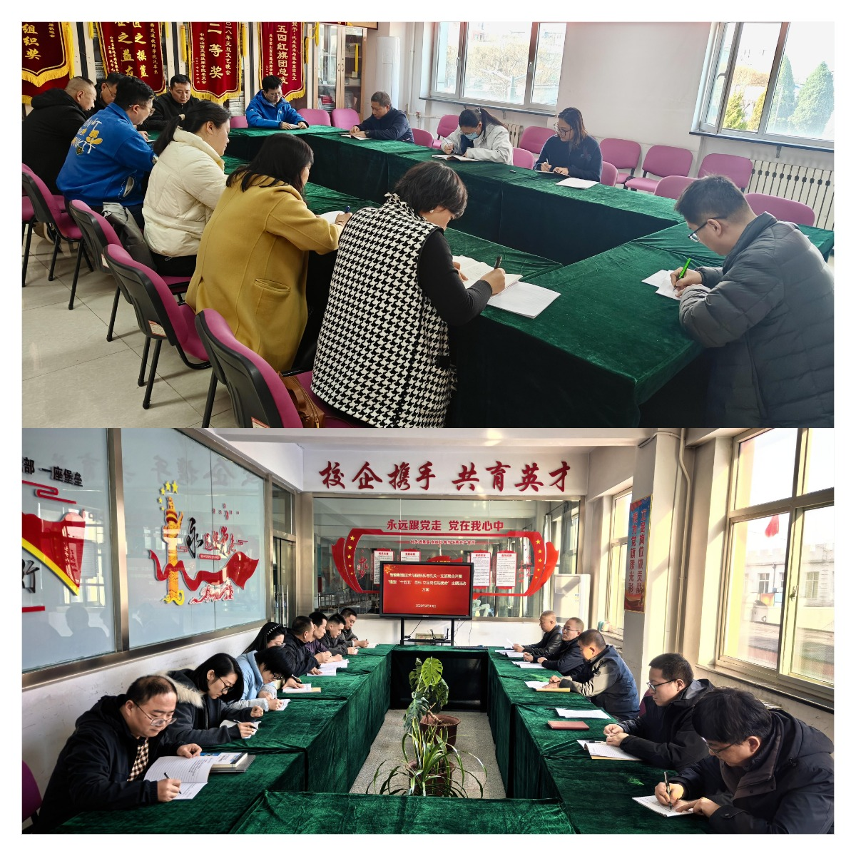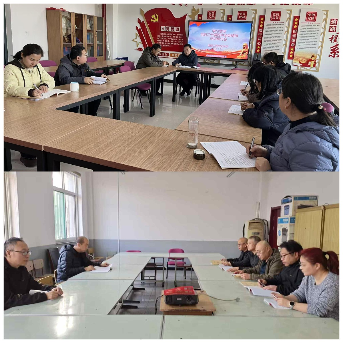 本次培训采取“集中培训+分组交流研讨”的方式进行。全体科级干部和党员集中学习了中央党校(国家行政学院)经济学教授讲授的《“十五五”时期经济社会发展的重大战略任务》和《“十五五”时期经济社会发展的指导思想、重大原则、根本保证和重大战略任务》等核心课程。随后,以支部为单位进行交流研讨,大家围绕贯彻落实全会精神,结合学院“十五五”高质量发展目标和自身岗位实际,就深化产教融合、校企合作,打造契合山西产业发展需求的特色专业群,落实立德树人根本任务,培养“德技并修”的新时代能工巧匠等议题,深入交流思想认识、畅谈工作思路、谋划落实举措。