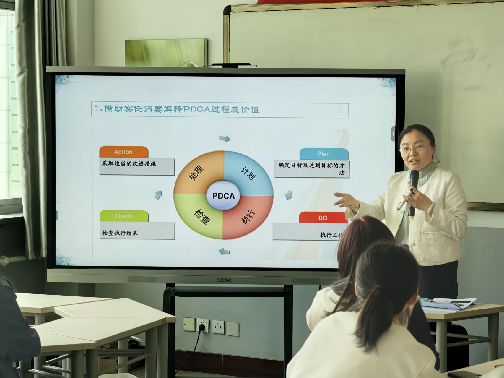 伴随着《职业素养之歌》的旋律,老师们重温了“诚信、积极、谨慎、专业”的职业素养内涵,进一步凝聚了团队共识。随后的“排序小测验”环节,常老师深入浅出地拆解了PDCA工作法——计划、执行、检查、改进的四大核心环节及其详细步骤,让理论知识变得清晰可感。